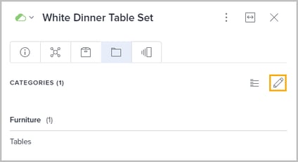 The Categories tab presents any catalogs/categories currently linked to this asset. You can click the view type button above the table to Change view type (Compact/Comfortable).