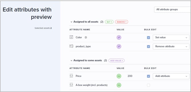 We have launched (April 14) a new way to manage your assets library at scale. The Edit attributes with preview feature allows you to perform mass updates effortlessly. The system automatically highlights shared attributes among your selected assets, giving you the clarity needed to make accurate, informed changes.