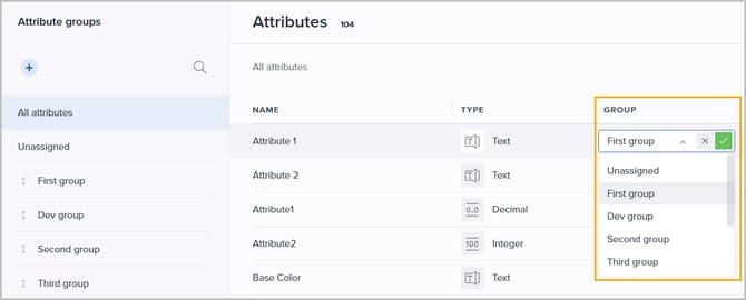 You can now link an attribute to a group - or change its current assignment - directly within the Attributes grid. Simply double-click a cell to activate the inline editor and update your groupings: