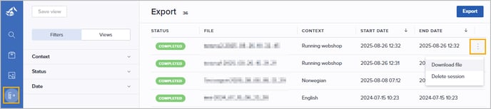 - Enter the desired file name and select the relevant context and file format. Click Generate file to start the export.