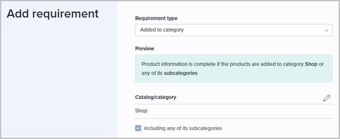 Use this requirement type when products must be assigned to a specific catalog or category:
