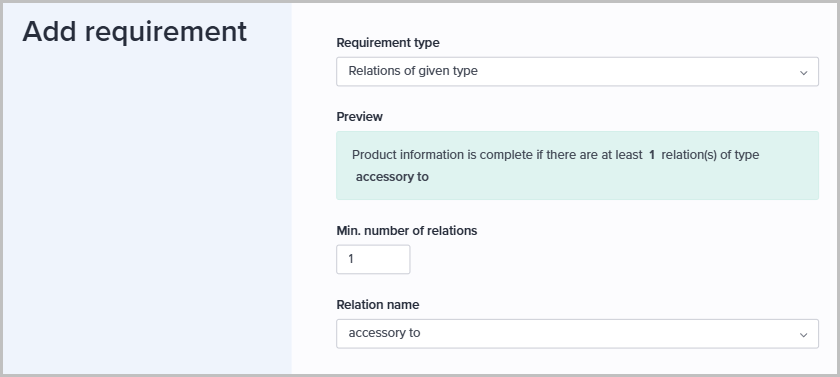 Use this requirement type when products must have at least the specified number of relations of the selected relation type: