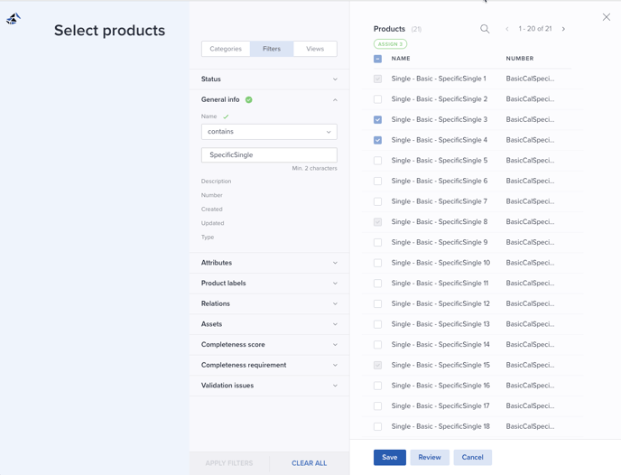 The Select products page is opened. Select the products you want to link to the price rule, and click Save.