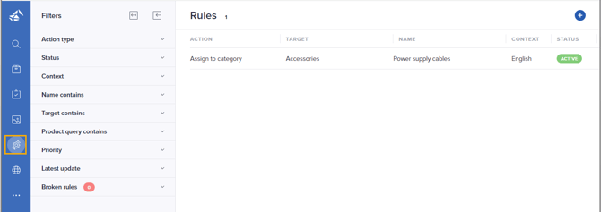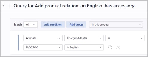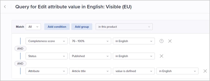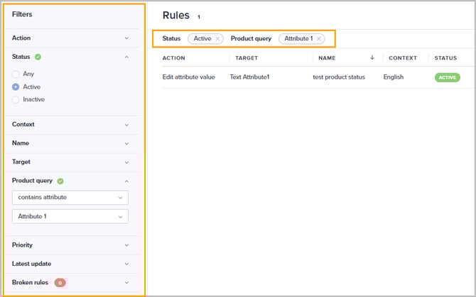 Tip! Use the Product query filter to quickly find rules based on attributes or attribute values used/not used in the connected query.