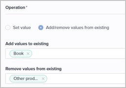 Only applicable for multi-select and dictionary attributes. Allows you to add more select values to, or remove some values from the currently selected set of values: