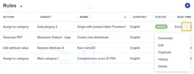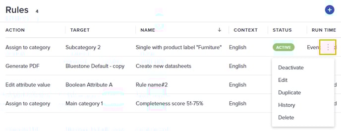 Hover a rule and click the 3-dots menu on the right-hand side to access the following actions: