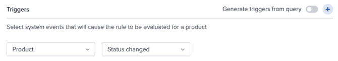 - In the Triggers section, specify which events that will cause the rule to be evaluated for a product.